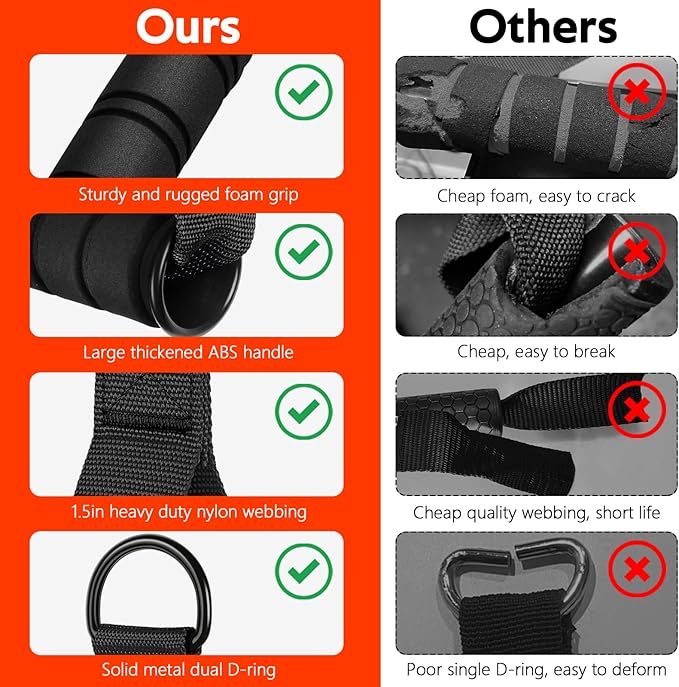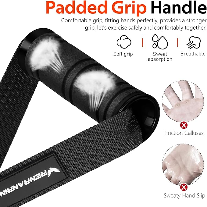 • Quality Strength Trainng Equiment: Ultra durable heavy duty resistance band handles for bodybuilders and gym enthusiasts. That thick woven nylon webbing and ABS core grips which proves more durable, max hold up to 560 lbs allowing your to engage in more intense exercise.