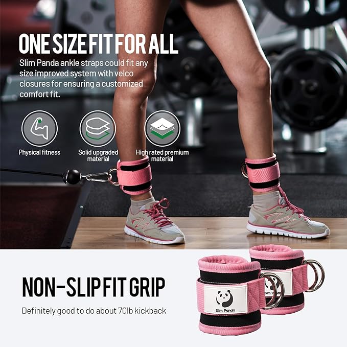 Slim Panda Ankle Strap for Cable Machine,Ankle Cuff for Kickbacks, Booty Hip Abductors,Glute Workouts, Leg Extensions, Curls for Men and Women, Adjustable with Double D-Rings
