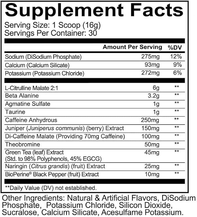 - Professional Grade Formula - 6g of l citrulline malate + 45mg of green tea extract + 150mg of juniper helps boost nitric oxide levels to deliver nutrients and help increase blood flow. Our 'pump' effect keto pre workout is formulated with premium ingredients backed by science and made for athletic people of all skillsets.