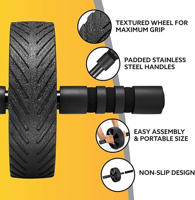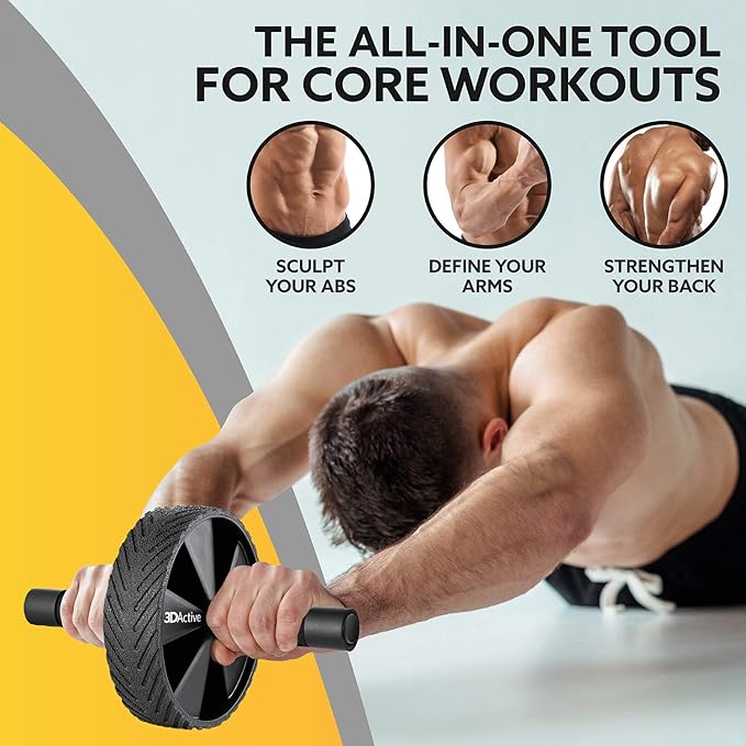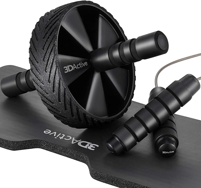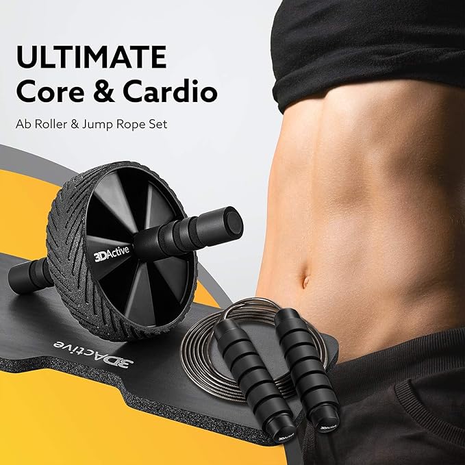 3DActive Ab Roller Wheel with Jump Rope & Knee Mat. Home Gym Exercise Equipment for Abs Workout, Core Training & Cardio Workouts.