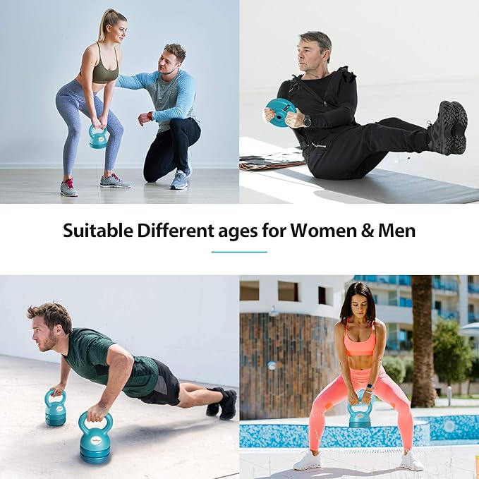 - Adjustable Weight: Easy to assemble, click and twist design makes adjustable kettlebell effortless to adjust from one weight to another; Multiple weight variations: 5lb kettlebell, 8lb kettlebell, 9lb kettlebells and 12lb kettleball