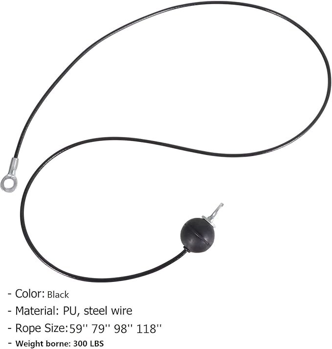 • 1.Cable diameter of 0.2inch/5mm,Length 98'', includes the black nylon coating,Maximum weight capacity is 300 LBS.Optional length, easy to install.