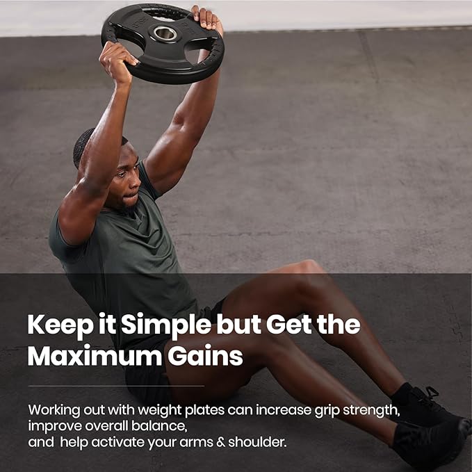 - Comfortable and Convenient: Each plate has 3 openings with strips on them for easy and secure grip when loading and unloading the weights. Labeled in LB for easy recognition.
