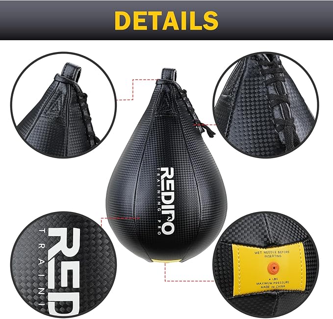 - Pear-Shape ball - Designed for rapid recoiling, This speed bag can help to develop your reflexes. The pear-shape provides easy targeting, allowing you to get accurate punches and good rebounds without messing up your rhythm.