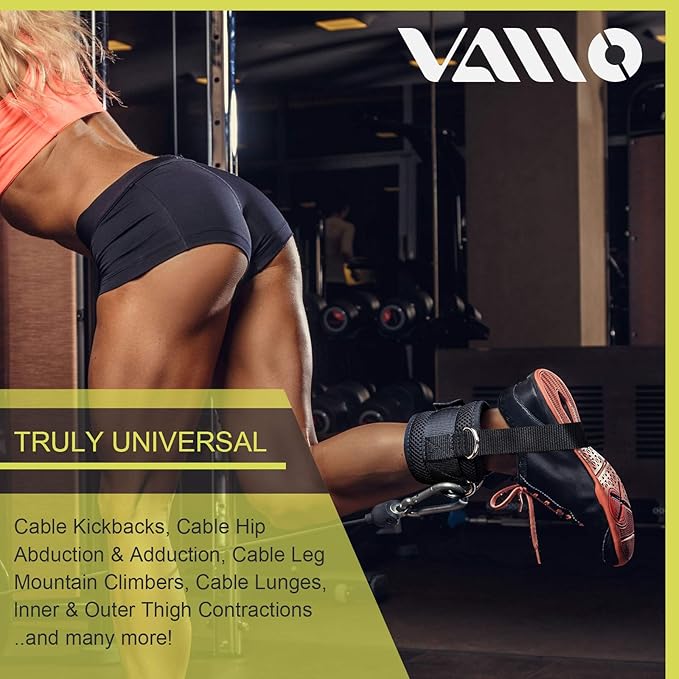 VAIIO Ankle Straps for Cable Machines,Adjustable Comfort fit Neoprene, Reinforce Double D-Ring - Premium Ankle Cuffs to Improve Abdominal Muscles, Lift The Butts, Tone The Legs for Men & Women