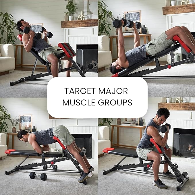 - Free Workout Poster Included – Maximize your strength training with a complimentary workout poster, providing a range of exercises tailored to this adjustable weight bench and your weight set for home gym.