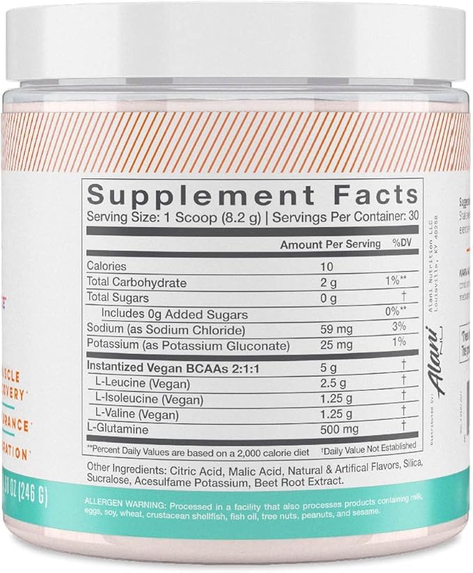 - PERFORM BETTER: Alani BCAA formula enhances endurance and hydration to keep you going in the gym when you need it the most. Our post workout blend of amino acids promotes muscle recovery while reducing muscle breakdown