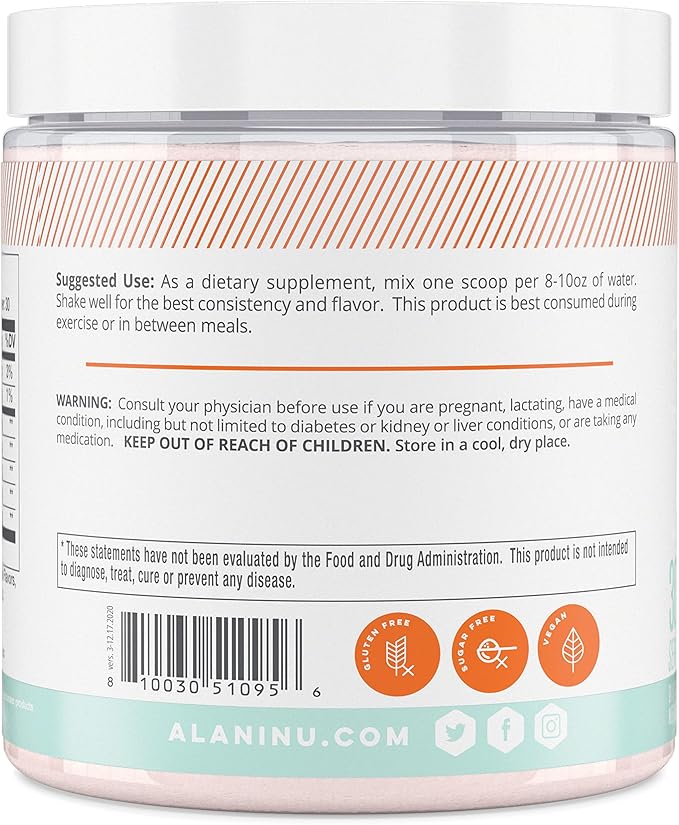 - CRAVABLE FLAVORS: Don't wait for cheat day! Alani BCAA is vegan, gluten free and sugar free to keep the power without the filler. Packed with all the nutrients you need and none of the fillers that you don't. Crush your goals, build strength, and recover quickly with Alani BCAAs