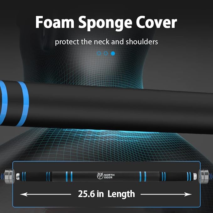 - OPTIMAL COMFORT: With foam sponge covering the bar, no pressure would be felt while exercising. As the surface is waterproof, just wipe the sweat off after use to keep it clean.
