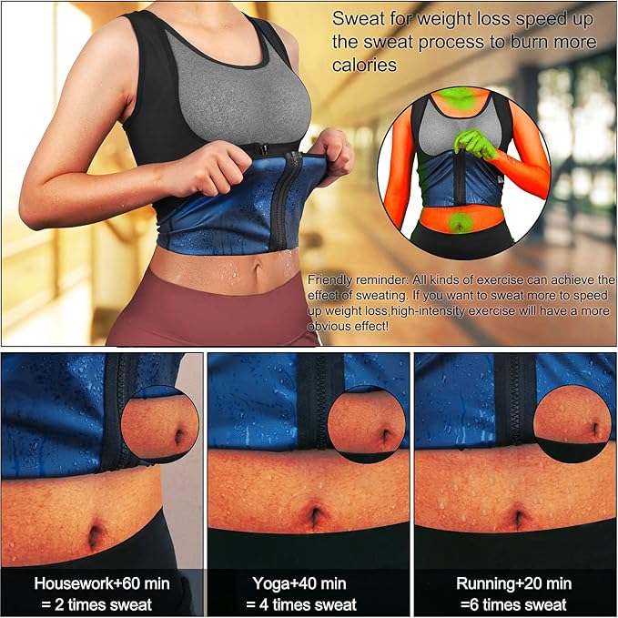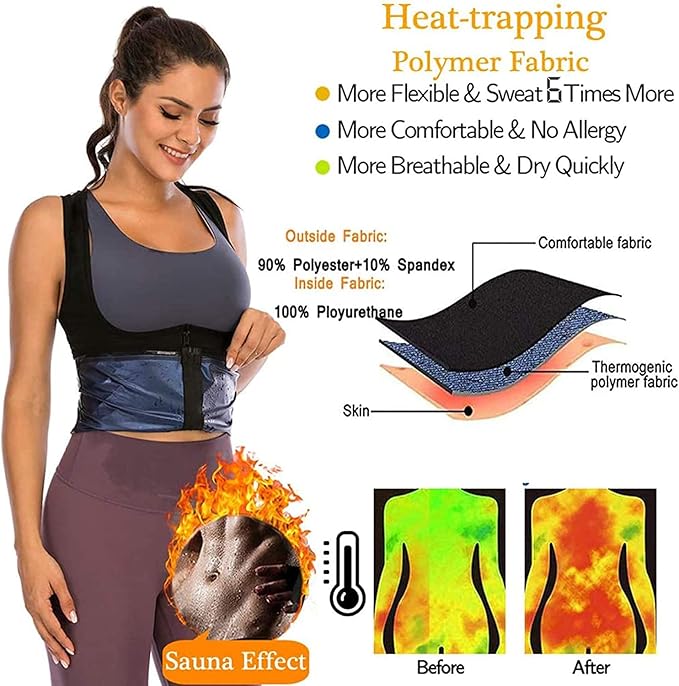 - 【Upgraded Zipper System】❤(Added zipper hooks to prevent the zipper falling off during exercise)The sweat tank for women is easy to put on and off, it has a protective back layer, so you won't pinch yourself during exercise, more comfortable for your sport. Compared to low-par neoprene alternatives, this vest no smell, no allergy, comfortable to wear all day. Sweat top is lighter, dries quicker, easy to be packed in your bag, suitable for all sports in GYM, outdoors and daily wear.