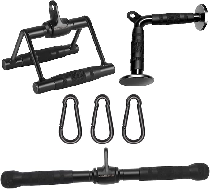 - ✅Combo includes: 1x Pull Down Bar, 1x V-Handle (Double D Handle), 1x V-Shaped Bar, 3x Carabiner Clips, Universal design fits most cable systems
