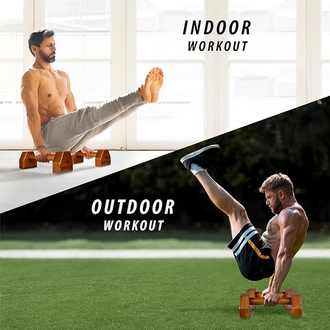 - SOLID CONSTRUCTION: Yes4All wooden parallettes are designed with longer handles, stable hexagon fulcrum and firm joints that bring users sturdy construction for peace-of-mind workout.