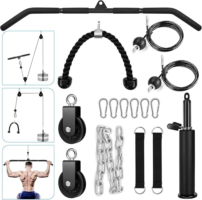 Fitness Cable Pulley System, Gym LAT and Lift Pulldown Machine Attachments, LAT Pull Down Bar Home Workouts Equipments for Biceps Triceps Shoulder Arm Curl Forearm Muscle Strength Exercise