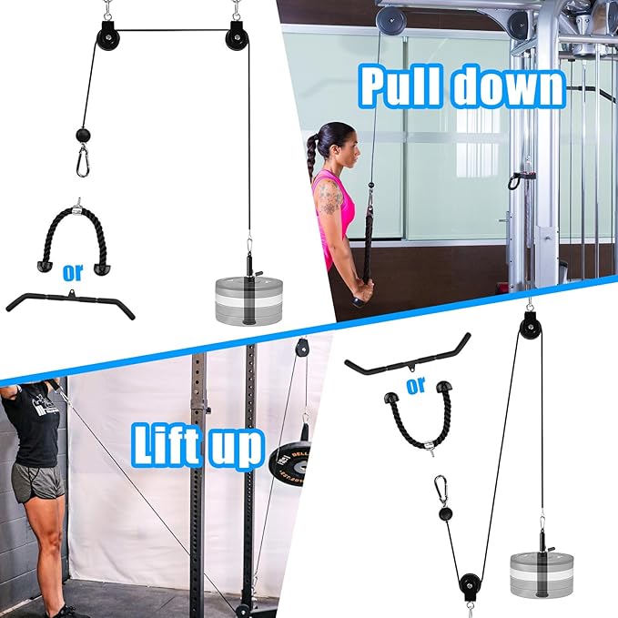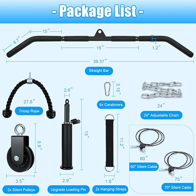 - 💪【Detachable Handles】 We provide triceps rope and straight bar, allows you to freely change the attachment you want. You can train triceps, biceps, forearms, legs, shoulders, and back. Such as Triceps Pull Down, Biceps Curl, Lat Pull Down, Row, Fly.