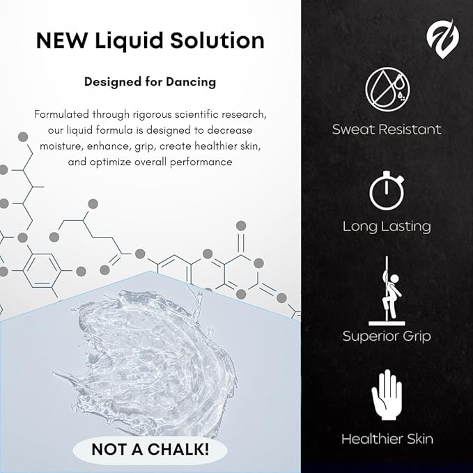 - Superior Grip for Pole Dancing – Our pole dancing liquid chalk alternative creates a tacky surface on your palms and fingers, enhancing friction and control for effortless turns, leaps, and intricate movements.
