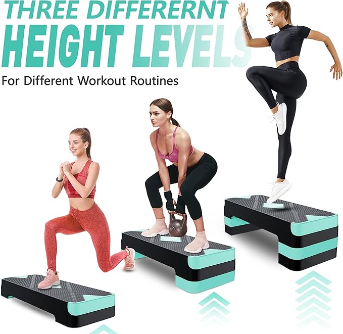 - UPGRADED 3 EASY ADJUSTABLE HIGHT: GYMMAGE Aerobic Stepper comes with 26.5" x 10.5" wide platform and 4 risers (2 pairs of risers). Intensify workout difficulty by adjusting platform height from 4” to 6” to 8” using risers to challenge yourself. Perfect for any levels of user of all ages