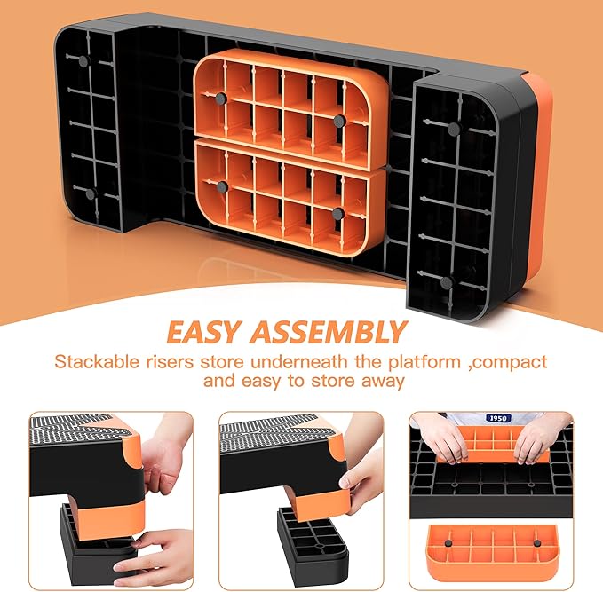 - LIGHTWEIGHT & COMPACT: GYMMAGE Step Platform is light in weight that you can carry it anywhere like office, gym, studio or outdoors. The stackable risers can be easily stored underneath the platform that you can store it under your bed, sofa or corner. Just step to a healthy life from now!
