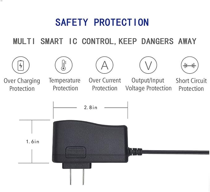 - Specifications: 6.5ft extra long power cords / Output: 6V 2000mA / Input 110V-240V 50Hz-60Hz/ ETL Listed.