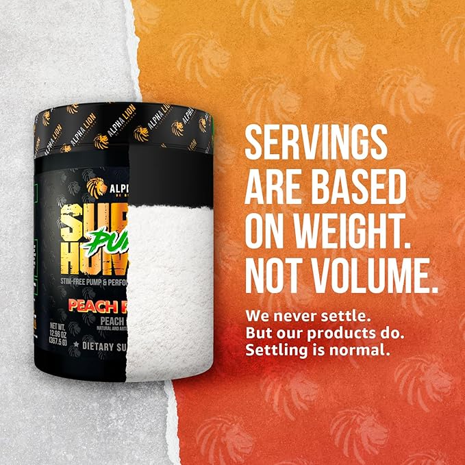 ALPHA LION Superhuman Pump Pre Workout Powder, Nootropic Caffeine & Stim Free Preworkout Supplement, Nitric Oxide Booster, Muscle Gainer, Energy & Focus (42 Servings, Peach Pumps Flavor)