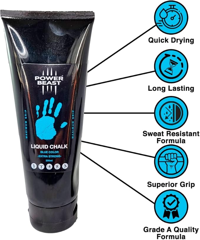 - ✅ EXTREME GRIP: Power Beast Colored Liquid Chalk offers extreme gripping power and great safety without slipping during your workouts. Specially designed to reduce hand perspiration to the maximum, thus offering the grip that a professional athlete needs.