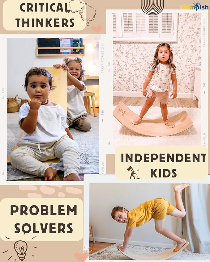 - π π ππππ¦ π π£ππ₯ππππ§ ππππ§ Unlike other wobble boards, that have poor quality, chips, peels, cracks, warped and not smooth. We designed our montessori balance board with high quality solid wood and very strong construction. With CHIMPISH strict quality control measures, our kids balance toys are made with more stability. Having nice thickness and very smooth edges. Over-sized 37 inch for adults, teens, kids or baby balance board.