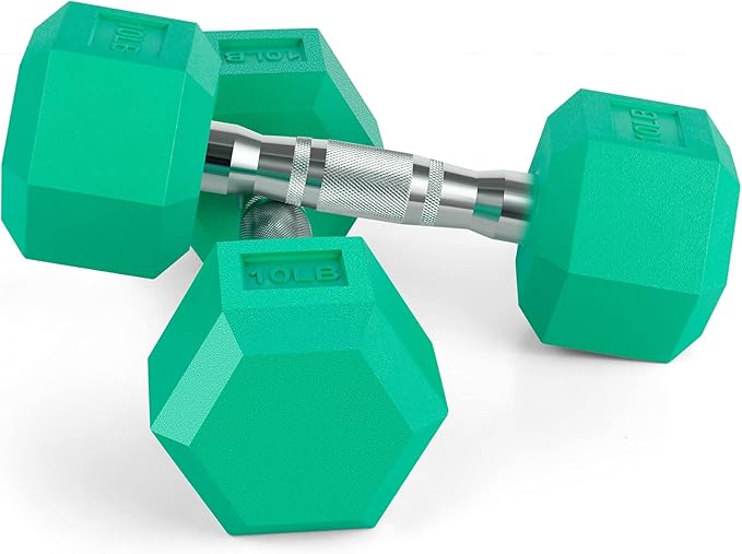 Portzon 8 Colors Options Compatible with Set of 2 Rubber Dumbbell Weight, 5-50 LB, Anti-Slip, Anti-roll, Hex Shape