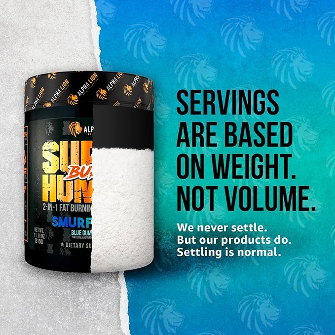ALPHA LION Superhuman Burn – 2 in 1 Metabolism Booster Pre Workout and Thermogenic Fat Burner for Men – Appetite Suppressant and Weight Loss Supplement (21 Servings, Blue Gummy Bear Flavor)
