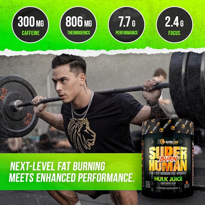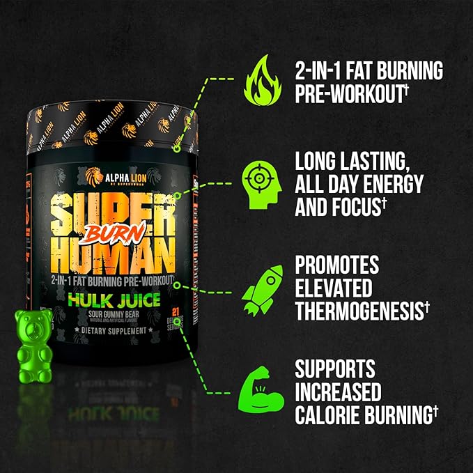 ALPHA LION Superhuman Burn – 2 in 1 Metabolism Booster Pre Workout and Thermogenic Fat Burner for Men – Appetite Suppressant and Weight Loss Supplement (21 Servings, Hulk Juice)