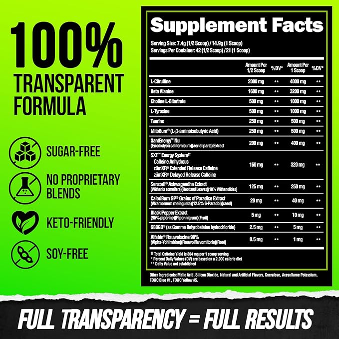- GREAT TASTING CAFFEINE MATRIX: Our pre workout is powered by our all new SXT Sustained Energy and Focus System. This tri-source caffeine matrix will provide you with more sustained energy and focus vs the standard forms of caffeine used in other pre workout supplements. Our Hulk Juice Sour Gummy Bear Burn Supplement will be like enjoying a delicious, top-shelf cocktail drink from a professional mixologist vs taking nasty shots of clearance bin vodka.