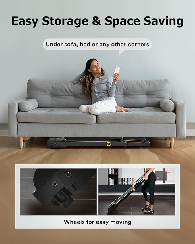 - Easy-to-fold Design to Improve Space Utilization: Folding it in only one step! The folding size is 48x26x5.5 inch (L x W x H). The compact design also makes it easier to store anywhere, even under the bed or sofa, taking up minimum space. UREVO new folding treadmill is now smaller and more convenient, weighing only 22.5kg.