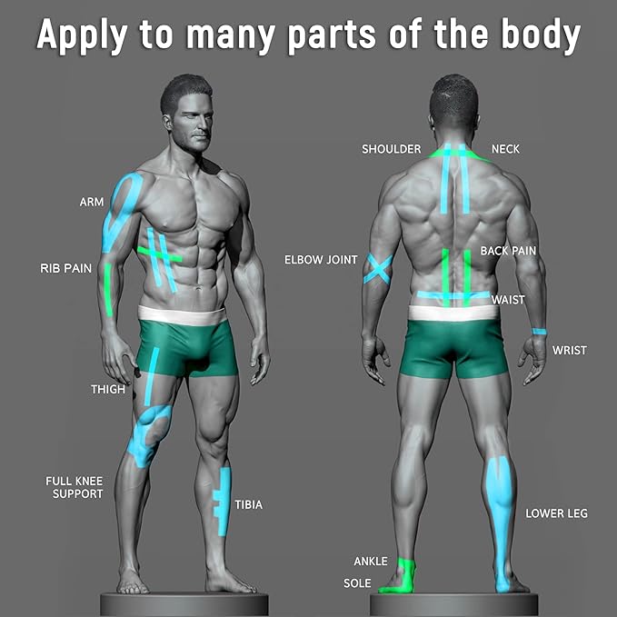 - â˝ď¸ăFaster RecoveryăReduce tissue pressure and support muscles and joints, helping you recover from pain faster. Kinesiology tape is used for knees, shoulders, back, soles, elbows, etc.