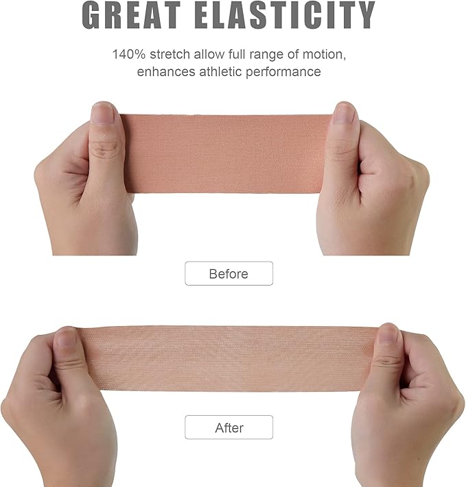 - Friendly and Water-proof: The muscle tape is made of premium skin-friendly cotton and has undergone thousands of water-proof test. Cut the tape to the length you need quickly and easily, place it where you need it. It lasts up to 3 days