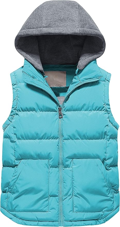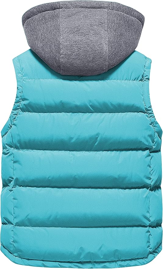 - 💕Practical & Convenient: Insulated Puffy Vest.This girl's or boy's ski vest features zip-front closure(Smooth and strong SBS zipper)Detachable hat with smooth zipper.Reinforced stitching.Wear-resistant fabric.Kangaroo pocket( fleece lining)and 1 inner pocket.Comfortable and soft elastic knit lining.The cutting and materials are nice.It is perfectly puffy, soft, and comfortable
