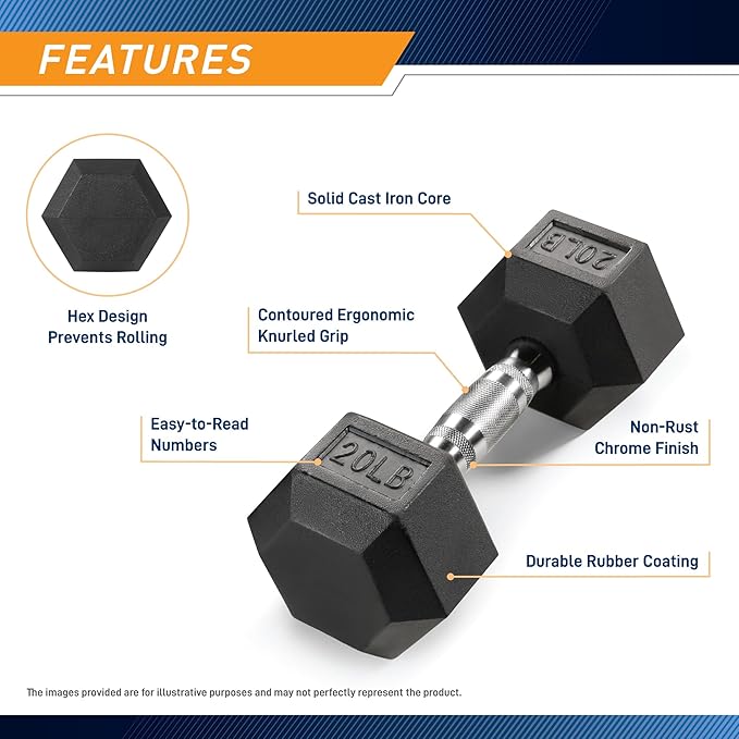 - Solid cast iron core with durable rubber coating