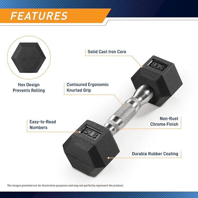 Marcy Rubber Hex Dumbbell Sold in Pairs - Available for 5lb - 20lb