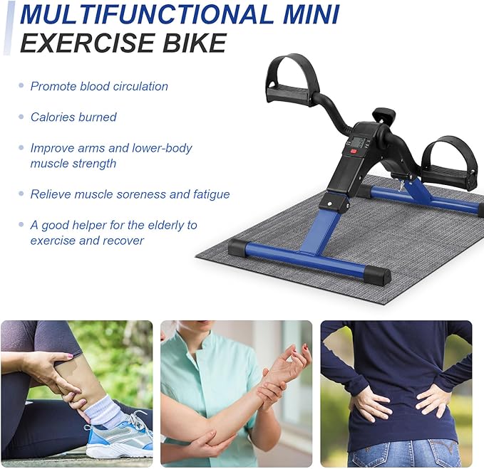 - 【Under desk bike pedal exerciser】: Uten's third-generation appearance design adopts high-grade silver and gray colors.The exercise bike is made of durable steel frame, which can be folded, and the crank arm ensures a long service life. The mini exercise bike can be used to stimulate blood circulation, improve muscle strength and coordination. It is specially designed to exercise arms and legs. The 4 anti-slip rubber pads prevent sliding and protect the surface during training.