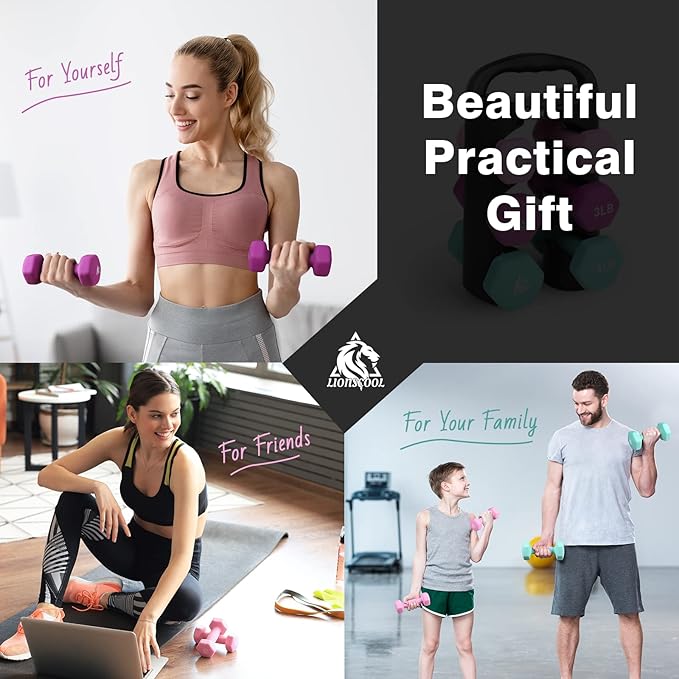 LIONSCOOL Set of 2 Neoprene Coated Dumbbell Hand Weights, Anti-Slip and Anti-Roll Hex Dumbbells in Pair for Strength Training, Resistance Training