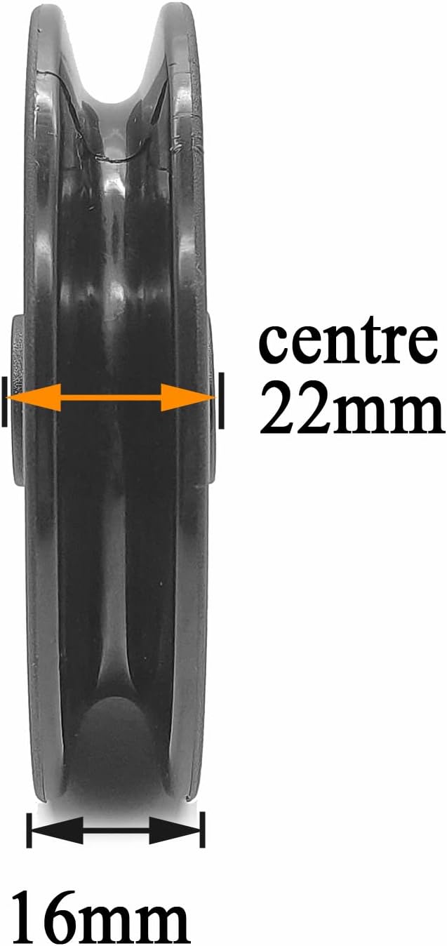 - UNIVERSAL FIT: The pulley wheel is 90mm diameter. Center hole diameter 10mm. Depth of groove 10.8mm ;Width of groove10.2mm. The wheels seat up to 7mm rope or cable.