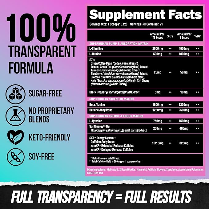 - IMPORTANT DISCLAIMER: We have updated our serving sizes for our Superhuman pre-workout powder from 42 to 21. You are still receiving the same amount for your motivation juice, just with a bigger scoop!