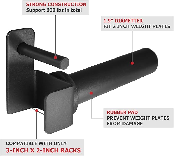 - EASY TO INSTALL AND USE: A2ZCare Weight Plate Holder can be easy to insert and lock-in design. Just slide pin into power rack's hole and swing down to lock in place. The design is especially ideal for loading and unloading the weight plates. Fit most of 3” x 2” square tubes rack and 0.6” hole or larger holes, but not all.