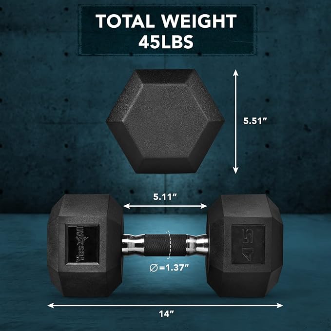 - VARIOUS CHOICES FOR YOUR LEVEL: choose the right level from our wide range of hex rubber dumbbell, including 10, 15, 20, 25, 30, 35, 40, 45, 50lbs, which is sold in individual