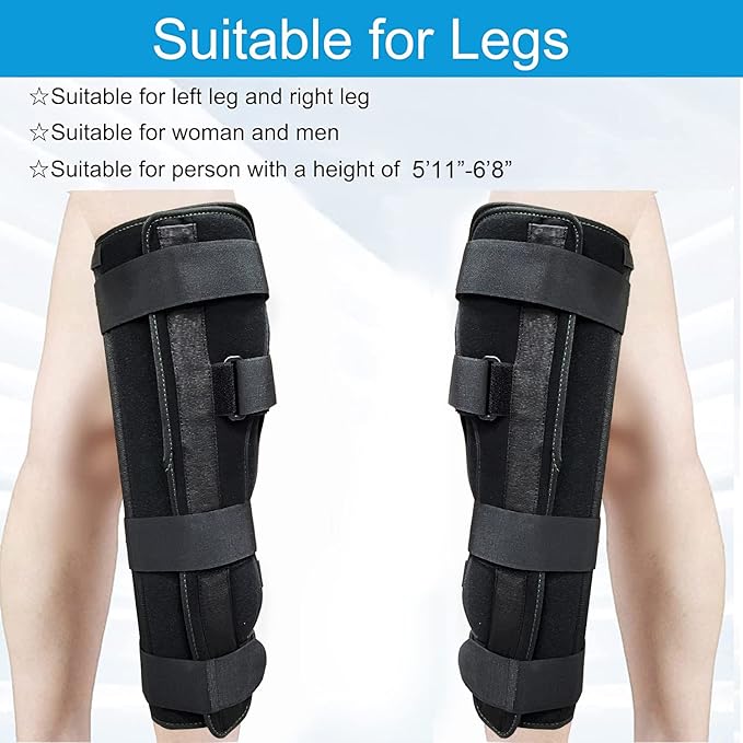 3-Panel Knee Immobilizer Full Leg Support Brace, Aluminum alloy Straight Knee Splint - for Knee Pre-and Postoperative & Injury or Surgery Recovery (Update Size L)