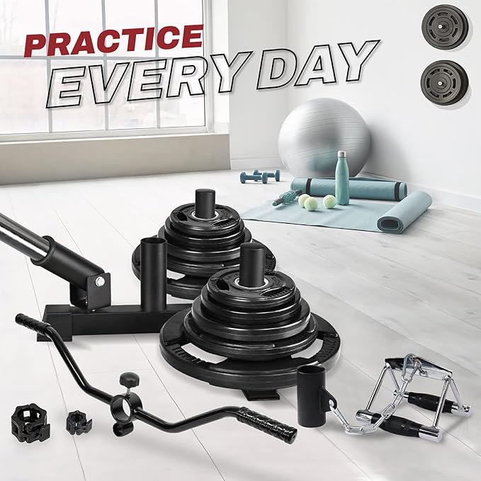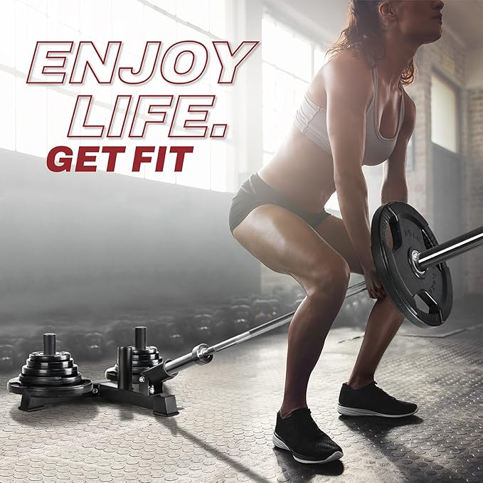 - FIT 2-INCH OLYMPIC BARBELL: fits with both standard and 2 inch Olympic Barbell and weight plates; Barbell securely installed with a lock knob for your safety.