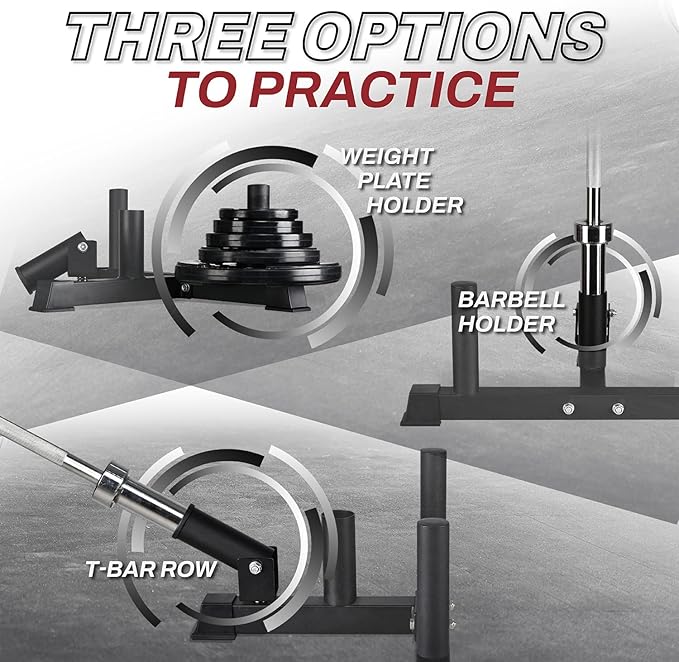 - MORE OPTIONS FOR STORAGE: convenient and cost-effective design with 3 functions – weight plate holder, barbell holder and T bar row in one product; no need other accessories for storage.
