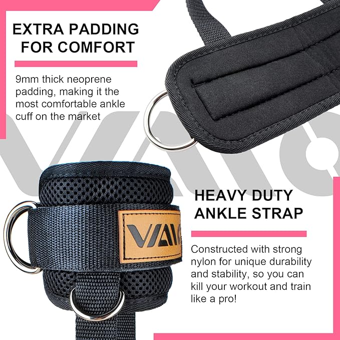 VAIIO Ankle Straps for Cable Machines,Adjustable Comfort fit Neoprene, Reinforce Double D-Ring - Premium Ankle Cuffs to Improve Abdominal Muscles, Lift The Butts, Tone The Legs for Men & Women