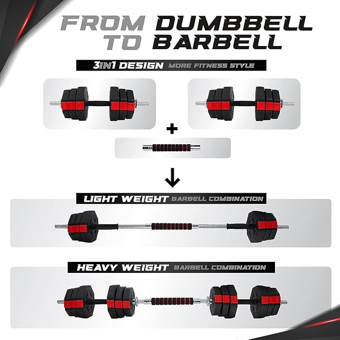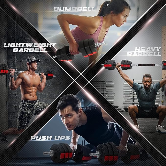 - VERSATILE WORKOUTS: Adjustable Dumbbell Set provides a wide range of weight options, easy to convert between dumbbell and barbell quickly.