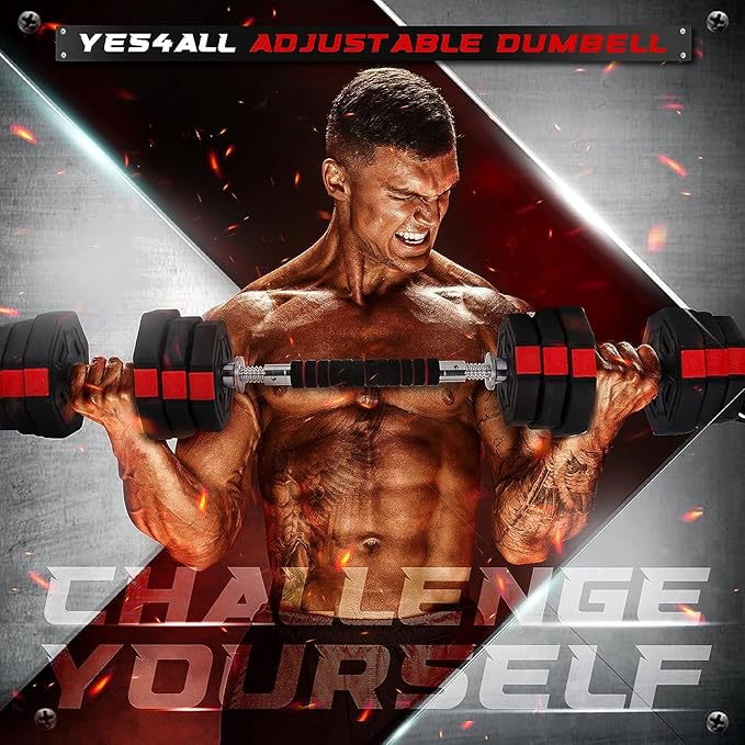 Yes4All Upgraded 44lbs/66lbs Pair Adjustable Weights Dumbbells Set, Free Weights Dumbbells Set with Connector, Cement Mixture
