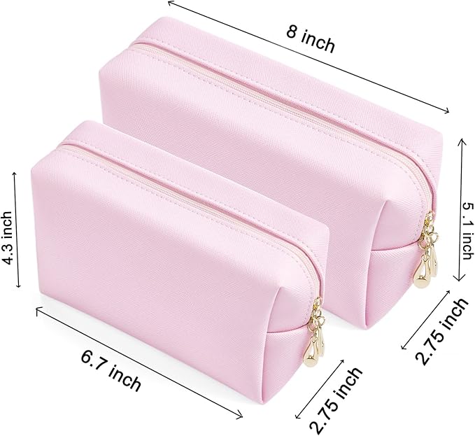 - 2 pcs set: Smaller bag around 6.7inch * 4.3inch *2.75inch,compact size with reasonable capacity for daily. Bigger bag around 8 inch *5.1 inch * 2.75inch,more space for traveling. Smaller bag can be put into bigger bag perfectly.