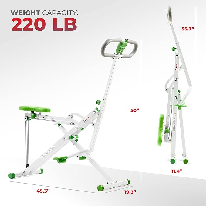 Sunny Health & Fitness Row-N-Ride Squat Assist Trainer, Foldable & Easy Setup Exercise Equipment w/Adjustable Resistance, Home Gym Training Machine for Arm, Glute & Leg Workout, Optional in Colors