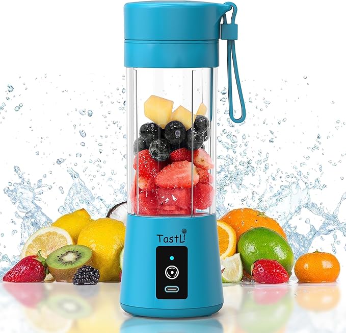 Portable Blender for shakes and smoothies, Cordless Personal Mini 13oz compact Blender Bottle, Travel Electric Juicer Cup, USB Rechargeable Mixer for Fruit Juice Protein mixes (Sky blue)
